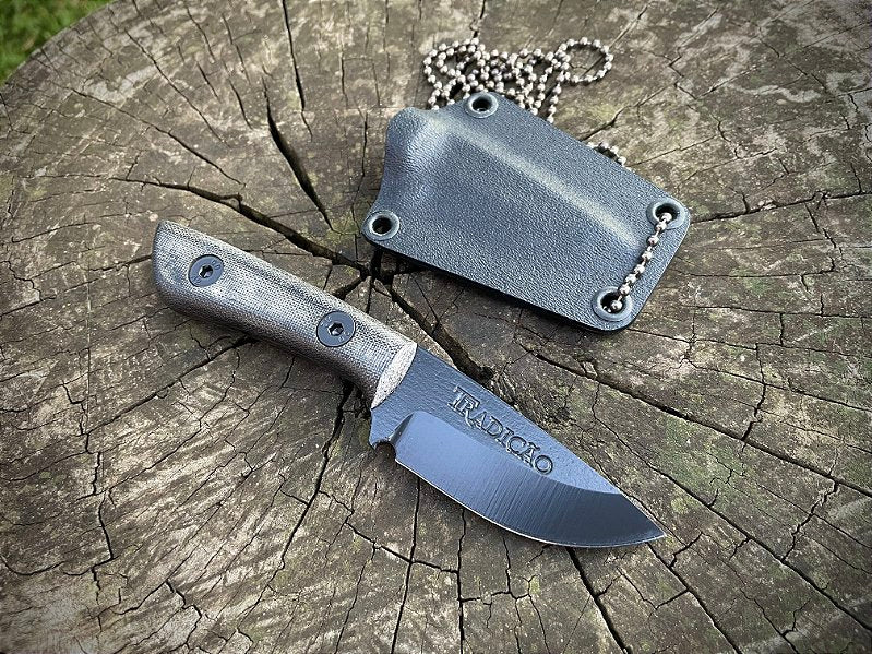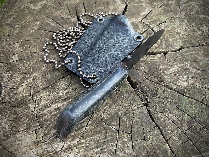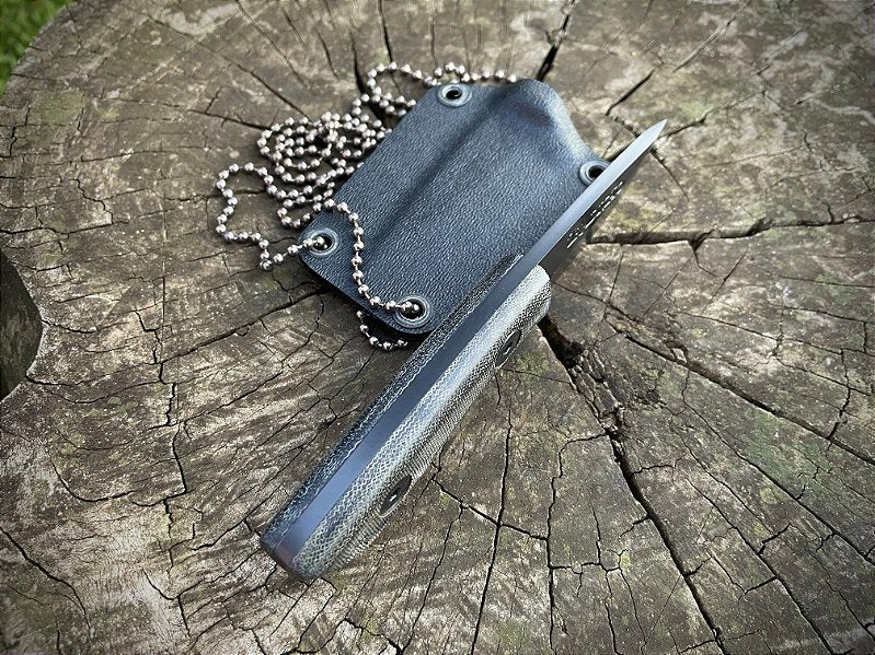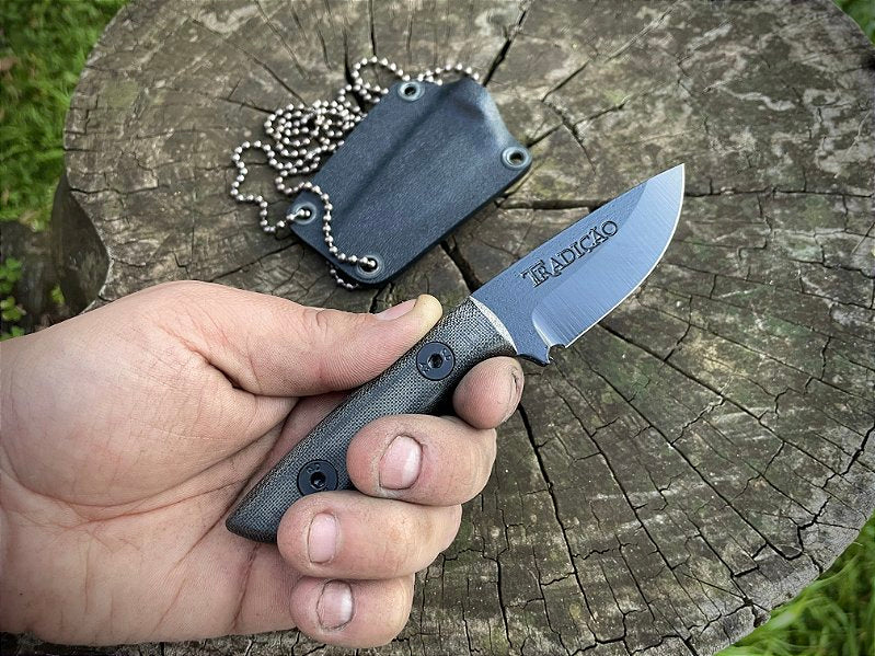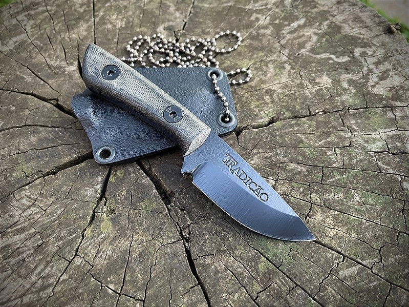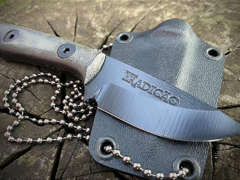 A faca de pescoço modelo Neck foi desenvolvida para ser utilizada como um colar, ao redor do pescoço do usuário.